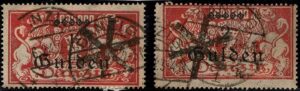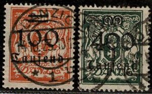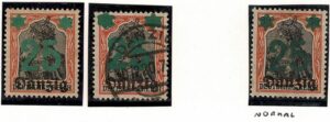 DESCRIÇÃO:*/◉ 18 - Dois selos com o tom da sobrecarga verde bem diferente do padrão normal. Um novo e outro usado....