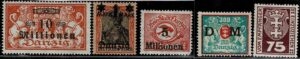 DESCRIÇÃO:(*)/* VARIEDADES - 5 diferentes variedades sem carimbo e catalogadas: Michel especial 41 III, 168 II, 180FI (falta picote no canto inferior...