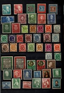 DESCRIÇÃO:◉ Caixa com cerca de 3.000 selos, predominando os regulares entre décadas de 50 e 80. No meio, 2 blocos, incluso o...
