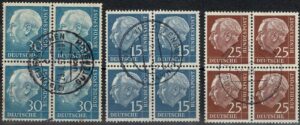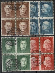 DESCRIÇÃO:◉ 200/203 - Série completa em quadras com carimbo comum. Os 3 primeiros com carimbo circular e o ultimo tipo “onda”. A...