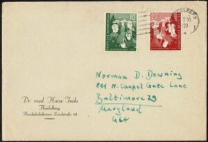 DESCRIÇÃO:Ano 1953 - Envelope circulado para os Estados Unidos e porteado com série completa Michel 153/4...