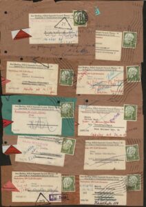 DESCRIÇÃO:Anos 1957/1961 - Lote com 10 fragmentos de frentes de envelopes/pacotes, todos com franquia isolada selo Michel # 194 (1 DM Presidente...