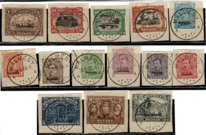 DESCRIÇÃO:◉ BÉLGICA - Malmedy - 1/14 - Série, todos sobre fragmento e com o mesmo carimbo: Malmedy 29.5.20. Parte com pontos de...
