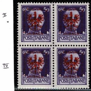 DESCRIÇÃO:** LAIBACH - 6 - Quadra, com variedades II e IV unidas com outros 2 selos normais - 150 Euros ++...