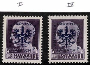 DESCRIÇÃO:** LAIBACH - 8 II 8 IV (variedades) em quadra, junto com 2 selos normais - 150 Euros...