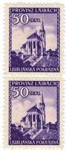 DESCRIÇÃO:** LAIBACH - 49 I (variedade), em par vertical com selo normal - 140 Euros...