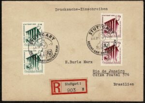 DESCRIÇÃO:** História Postal - Ano 1939 - Envelope registrado circulado para o Rio de Janeiro com chegada. Par série Michel 692/693 com...