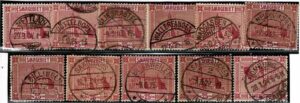 DESCRIÇÃO:◉ CARIMBOLOGIA - Selo Michel # 100 - Conjunto com 11 diferentes carimbos circulares. Vide imagem na web....