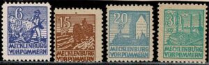 DESCRIÇÃO:Zona Soviética ** Especial 33xb, 37za, 38yb (1 dente com ferrugem) e 39z - Meckenburg Vorpommern - Todos competentemente expertizados - 80...