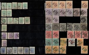 DESCRIÇÃO:3 EMISSÕES DO COMEÇO DA REPÚBLICA - Cartelas com ao todo 358 selos, assim dividido pelas 3 emissões: Tintureiro (21 selos usados)...