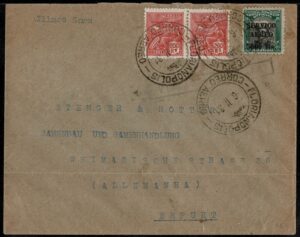 DESCRIÇÃO:Condor - Ano 1938 - 2 Envelopes timbrados (1 refilado em cima) da Cia Hering, circulados de Blumenau para a Alemanha. Selos...