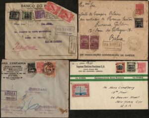 DESCRIÇÃO:NYRBA - Ano 1930 - 3 envelopes circulados internamente , com carimbo via Nyrba: Ilhéos/Salvador, Ceará/Rio de Janeiro e Bahia/Rio de Janeiro...