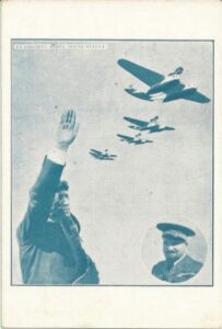 DESCRIÇÃO:Balbo - Ano 1930 - Raro cartão postal Italiano, em tom azulado, sentido vertical, figurando aviador 4 aviões figura do General Italo...