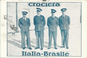 DESCRIÇÃO:Balbo - Ano 1930 - Raro cartão postal Italiano, figurando tripulação do Aparelho n° 9 – Esquadrilha “Rosa” e alusivo à “Crociera...