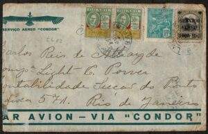 DESCRIÇÃO:Condor - Ano 1930 - Envelope refilado no lado esquerdo, circulado do Rio Grande do Sul para o Rio de Janeiro, com...