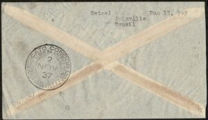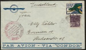 DESCRIÇÃO:Condor - Ano 1937 - Envelope circulado de Santa Catarina para a Alemanha, com carimbo circular alusivo e no verso,...