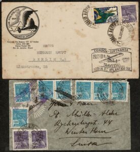DESCRIÇÃO:Condor - Ano 1937 - Condor/Lufthansa - 2 envelopes circulados para o Exterior (São Paulo/Suíça e Rio de Janeiro/Alemanha) ambos com carimbo...