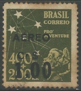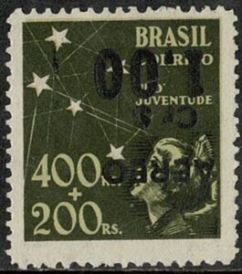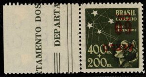 DESCRIÇÃO:** 54C - Pró Juventude. Exemplar margem esquerda de folha com a sobrecarga invertida + transparência da Cabeça - 270 UF só...