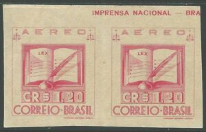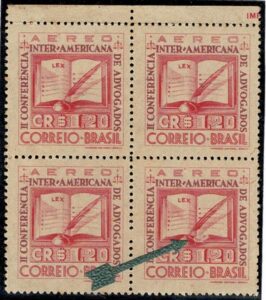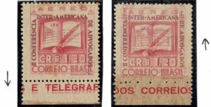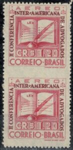 DESCRIÇÃO:** 51 - Conferência Advogados - Par vertical com variedade: Falta do picote horizontal entre os selos....