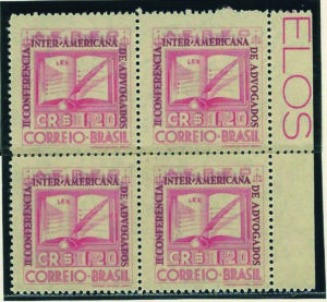 DESCRIÇÃO:* 51C - Conferência Advogados - Quadra, ficando 1 selo com a variedade: Mancha no tinteiro - 60 UF +......