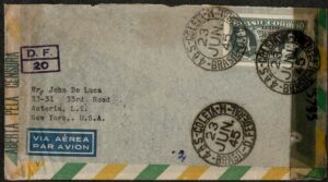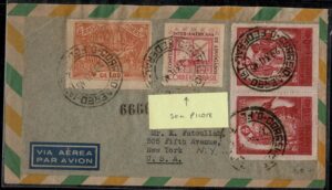 DESCRIÇÃO:Ano 1945 - Envelope registrado circulado do Rio de Janeiro para os Estados Unidos, com chegada. Porteado com 3 selos da série...