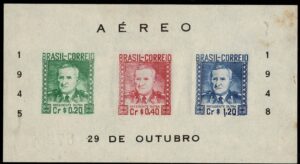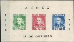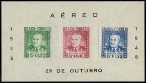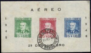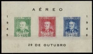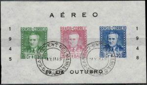 DESCRIÇÃO:◉ 10 - Dutra - Carimbo de 1º Dia : 14.12.1948, aplicado sobre o selo do meio. Pontos de ferrugem - 500...