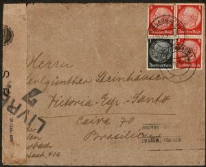 DESCRIÇÃO:Ano 1935 - Envelope vindo da Alemanha para Vitória (ES) com chegada. Porteado com 4 selos regulares. Duplo carimbo ref 1.6.8.0 +...