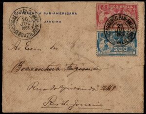 DESCRIÇÃO:Ano 1906 - Envelope timbrado da Conferência Panamericana (RJ) circulada dentro do Rio de Janeiro no dia 26 e chegada no mesmo...