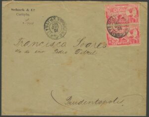 DESCRIÇÃO:Ano 1906 - Envelope circulado de Curitiba para Prudentópolis com chegada. Porteado com 2 selos #5 (100Rs Panamericano) fazendo o correto porte...