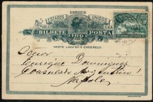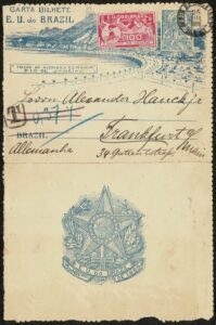 DESCRIÇÃO:Ano 1906 - Inteiro Postal Carta Bilhete do Congresso Pan Americano (200Rs) selo 5 (100Rs Panamericano) sem carimbo, circulado do Rio de...