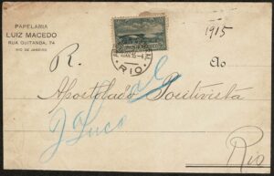 DESCRIÇÃO:Ano 1915 - Envelope circulado dentro da cidade do Rio de Janeiro, com carimbo de chegada no mesmo dia. Envelope um pouco...