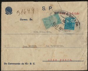 DESCRIÇÃO:Ano 1930 - Envelope oficial (Serviço Público) expresso, circulado dentro de Minas Gerais com chegada. Selo 24 (100Rs Arquitetos) + 1$000 Vovó....