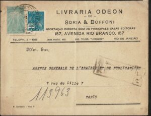 DESCRIÇÃO:Ano 1930 - Envelope timbrado e registrado, circulado do Rio de Janeiro para a França, com chegada. Selo vovó + selo 24...
