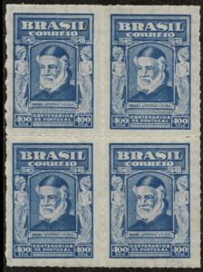 DESCRIÇÃO:**/* 161 - 400Rs Padre Vieira - Filigrana N - Quadra, 2 selos superiores só com marca de charneira e 2 inferiores...
