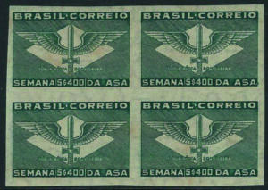 DESCRIÇÃO:**/* 177A - Congresso Eucarístico - Filigrana menor - Quadra margem de folha, 3 selos ** e 1 * - 735 UF...