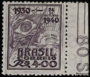 DESCRIÇÃO:** 157A - Decenio Governo Getúlio Vargas - Filigrana M - Margem direita de folha - 420UF...