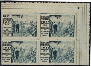 DESCRIÇÃO:(*) 162SD - Cent. de Portugal - Quadra sem goma, margem superior direita de folha e sem picote - 290 UF...