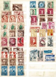 DESCRIÇÃO:ACUMULAÇÕES ◉ MARMORIZADOS - Cartela com 50 selos usados, de 29 tipos diferentes: 384, 385, 388x2, 392x3, 393, 393Ax3, 395x2, 400Ax2, 407,...