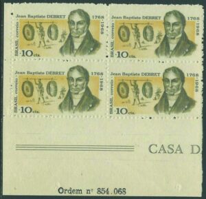 DESCRIÇÃO:(*) 616A - Debret - Quadra impressa no lado fosco - 720 UF...