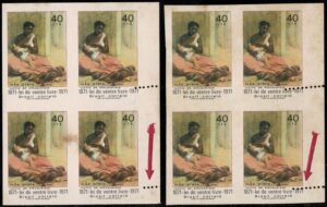 DESCRIÇÃO:* 708 - Lei do Ventre Livre - 2 quadras com a mesma variedade e que devem ser originárias da mesma folha:...