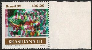 DESCRIÇÃO:** 1306 - Carnaval. Selo com grande deslocamento horizontal de parte das cores....
