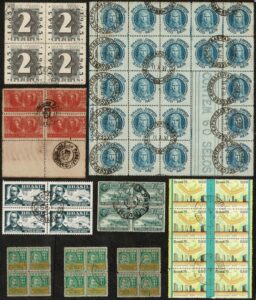DESCRIÇÃO:◉ QUADRAS COM CARIMBO COMUM - Caixa contendo pouco + de 800 Quadras diversas, começando no selo C8 e vindo até o...