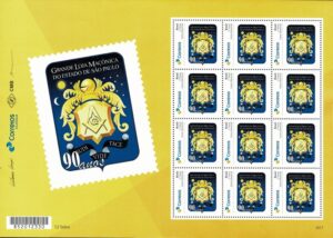 DESCRIÇÃO:** Personalizado Básico - Ano 2017 - 90 Anos da Grande Loja Maçônica do Estado de São Paulo. Sentido vertical. Lote com...