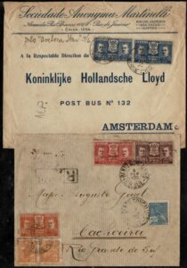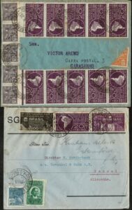 DESCRIÇÃO:EMISSÃO SÃO VICENTE (C41/45) - Lote com 13 envelopes circulados para estudo, sendo 5 internamente e 8 ao exterior....