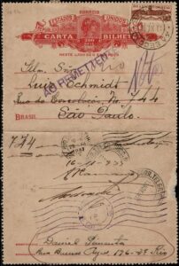 DESCRIÇÃO:Ano 1933 - Inteiro Postal Carta Bilhete CB96 (200Rs) selo C65 (Pró Aeroportos) com data 13.11, circulado do Rio de Janeiro para...