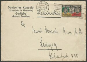 DESCRIÇÃO:Ano 1932 - Envelope circulado de Curitiba para a Alemanha. Selo 36 (700Rs Revolução de 30) em franquia isolada. Pontos de ferrugem.....