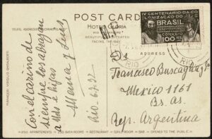 DESCRIÇÃO:Ano 1932 - Cartão Postal do Rio de Janeiro, circulado para a Argentina. Carimbo MP na peça. Selo 42 (100Rs Colonização São...