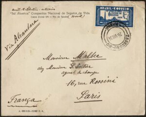 DESCRIÇÃO:Ano 1934 - Envelope circulado do Rio de Janeiro para a França. Selo isolado 68 (700Rs Feira de Amostras)....