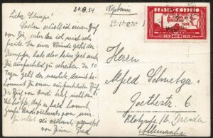DESCRIÇÃO:Ano 1934 - Cartão Postal do Rio de Janeiro, circulado para a Alemanha. Selo 67 (400Rs Feira de Mostras) em franquia isolada...
