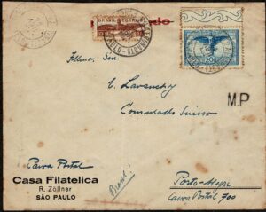 DESCRIÇÃO:Ano 1933 - Envelope timbrado da Sociedade Filatélica Rio Grandense, circulado de Porto Alegre (15.11) para Novo Hamburgo, com chegada (17.11) Carimbo...
